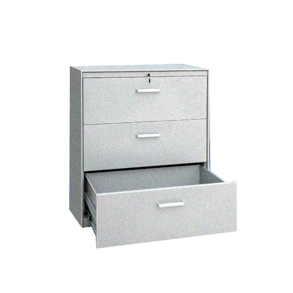 Wide three-drawer steel filing cabinet